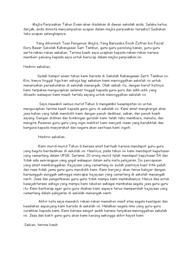 Contoh Karangan Catatan Perpisan Seorang Guru Besar Sahaja