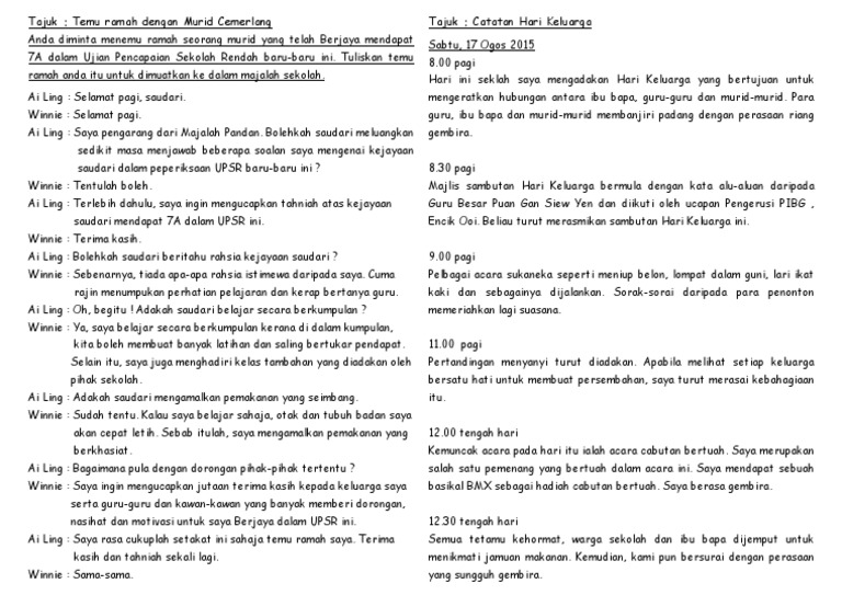 Contoh Karangan Temuramah Pelajar Cemerlang Catatan Hari Keluarga Pdf